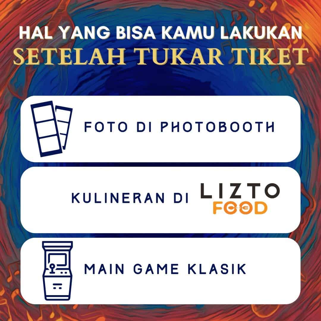 Gedung Kesenian Jakarta sudah dibuka mulai jam 16.00 WIB. Buat kamu yang sudah tukar tiket, jangan bingung mau ngapain. Selagi nunggu konser dimulai, banyak aktivitas yang bisa kamu lakukan. Di antaranya adalah foto di photobooth yang tersedia, kulineran di Lizto Food, dan main game klasik yang ada di area foyer.